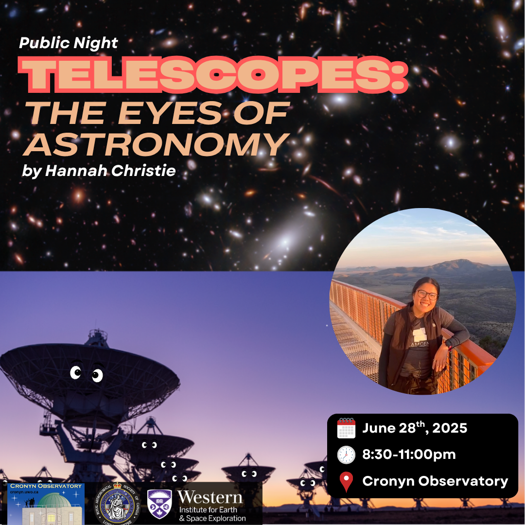Join us at Cronyn Observatory for Public Night on Saturday, June 28, 2025, from 8:30 – 11:00 pm!